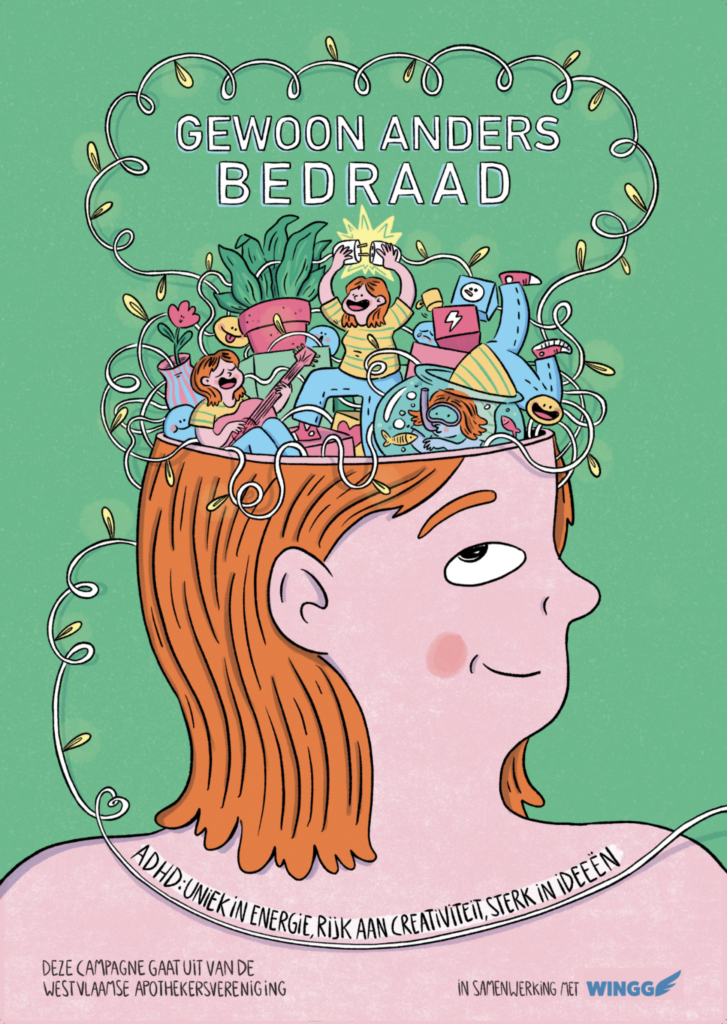 Dit is onze campagneslogan waar we het bewustzijn rond ADHD groter willen maken. ADHD is niet zomaar ‘drukker’ of ‘chaotisch’ zijn, maar een andere bedrading in de hersenen die ervoor zorgt dat we mensen met ADHD in hun sterktes kunnen coachen, op een andere manier, anders bedraad.